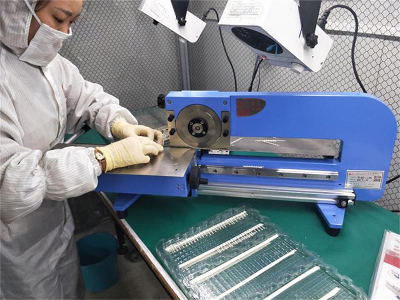 2、直刀滑移速度可手控,V槽導(dǎo)向裝置可調(diào)校高低,更快捷地適應(yīng)不同厚度的基板