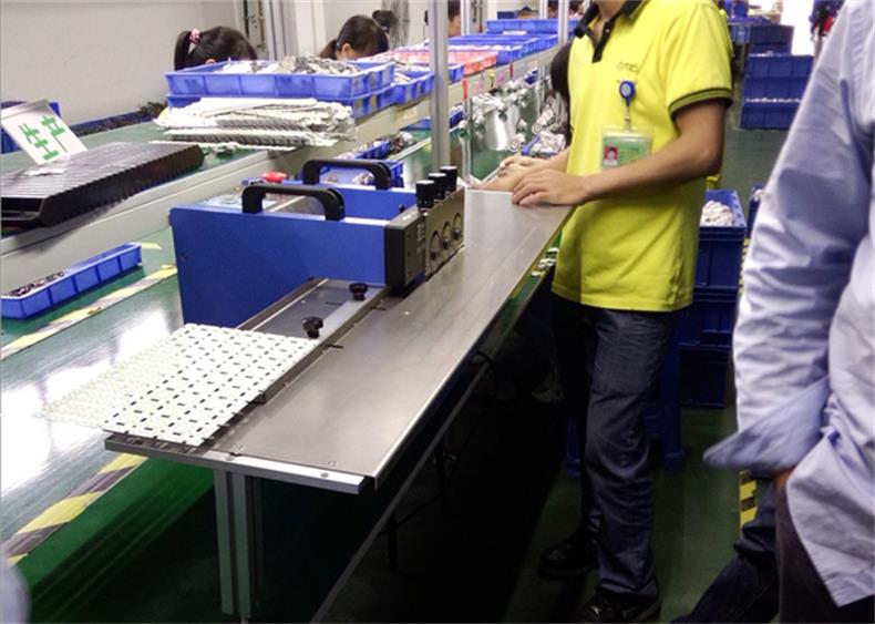 1、操作簡單,速度快捷。本機器采用獨特的單V槽連板多切割方法,電路板切割由3組刀片完成,上下兩片為一組,構(gòu)成一個切割單元組。分別是A、B、C、三組。整個切割過程分為三個階段,A組刀片先切割電路板V槽部分的40%,接著B刀片再次從A刀片切過的槽中碾過,再次完成V槽部分40% 的切割量,最后由C組刀片切割最后的20% 并修光。