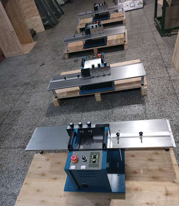 1、操作簡單,速度快捷。本機器采用獨特的單V槽連板多切割方法,電路板切割由3組刀片完成,上下兩片為一組,構成一個切割單元組。分別是A、B、C、三組。整個切割過程分為三個階段,A組刀片先切割電路板V槽部分的40%,接著B刀片再次從A刀片切過的槽中碾過,再次完成V槽部分40% 的切割量,最后由C組刀片切割最后的20% 并修光。